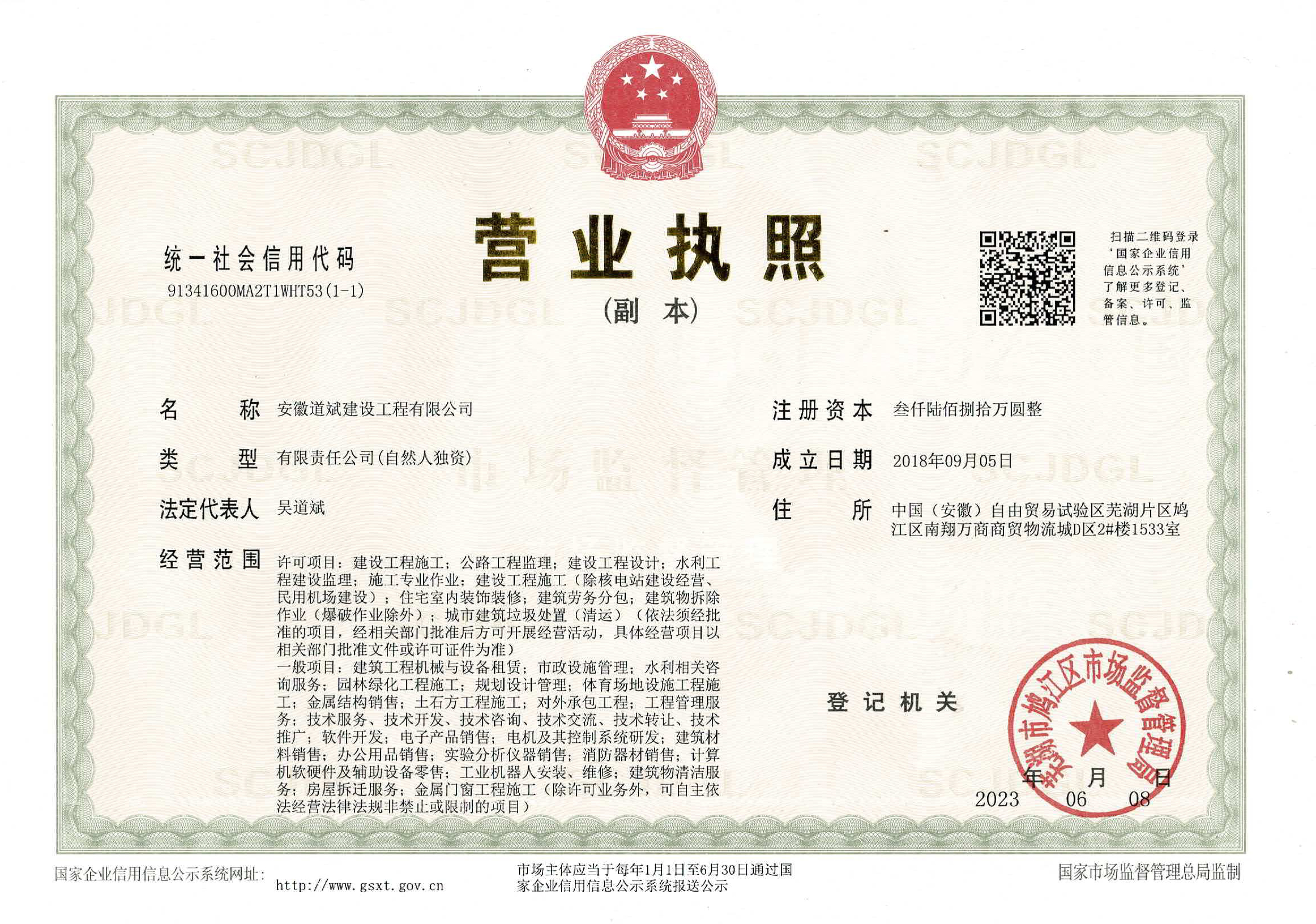 安徽道斌建設(shè)工程有限公司 版權(quán)所有 免責(zé)聲明 皖I(lǐng)CP備2021012659號-1 營業(yè)執(zhí)照